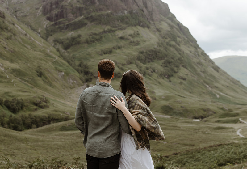 February in Glencoe brings winter crisp air, and ever-changing skies. As we hope to have an outdoor ceremony weather permitting and with plenty to see in the grounds, warm coats and practical footwear options are very welcome.